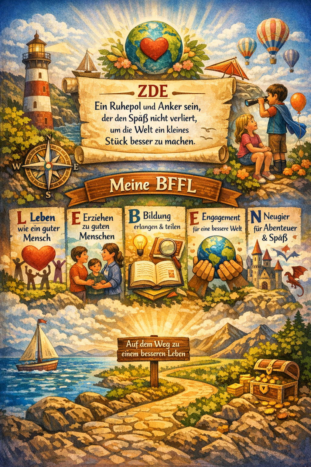 Aus meinem ZDE und meinen BFFL habe ich mir ein Bild generieren lassen, das ich ausgedruck und einlaminiert in meinem Büro an die Wand gepinnt habe. Ich frage mich jetzt bei jeder Eintscheidung, ob sie meinem ZDE entspricht und ob sie auf eines meiner BFFL einzahlt. Und so manche Entscheidung habe ich anders gefällt, was mir früher nicht so leicht gefallen wäre.